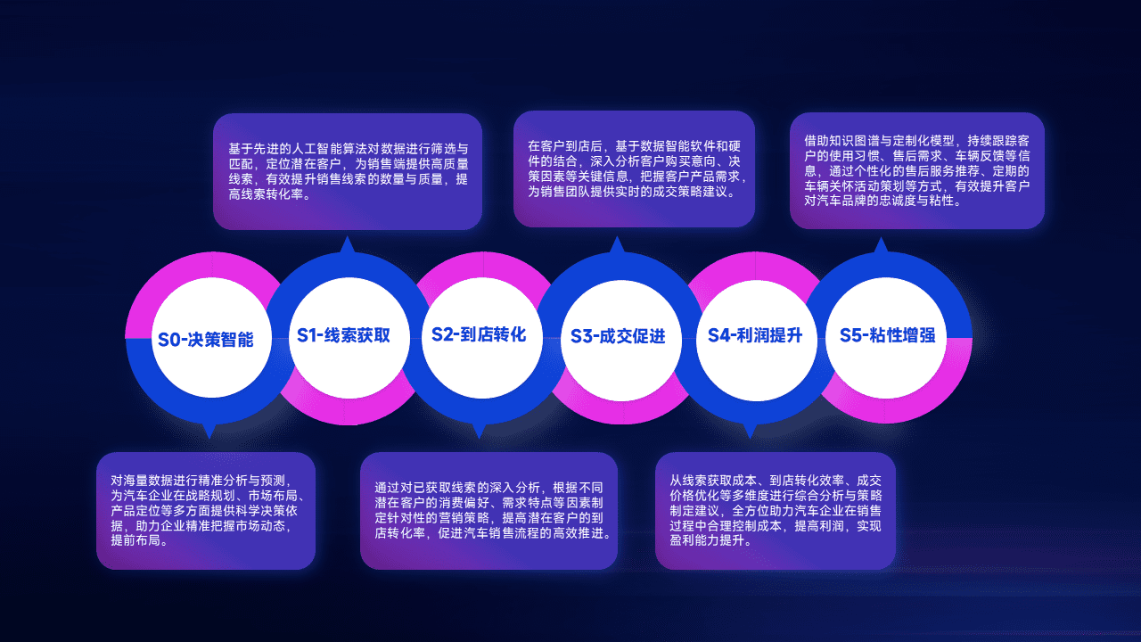 通过拓宽潜在客户来源、、优化线索分配并提高到店转化率,,,,以增强销售效率。。同时,,,,利用线索数据不断优化分析模型,,,有效提升转化率,,,,扩大营销影响力。。